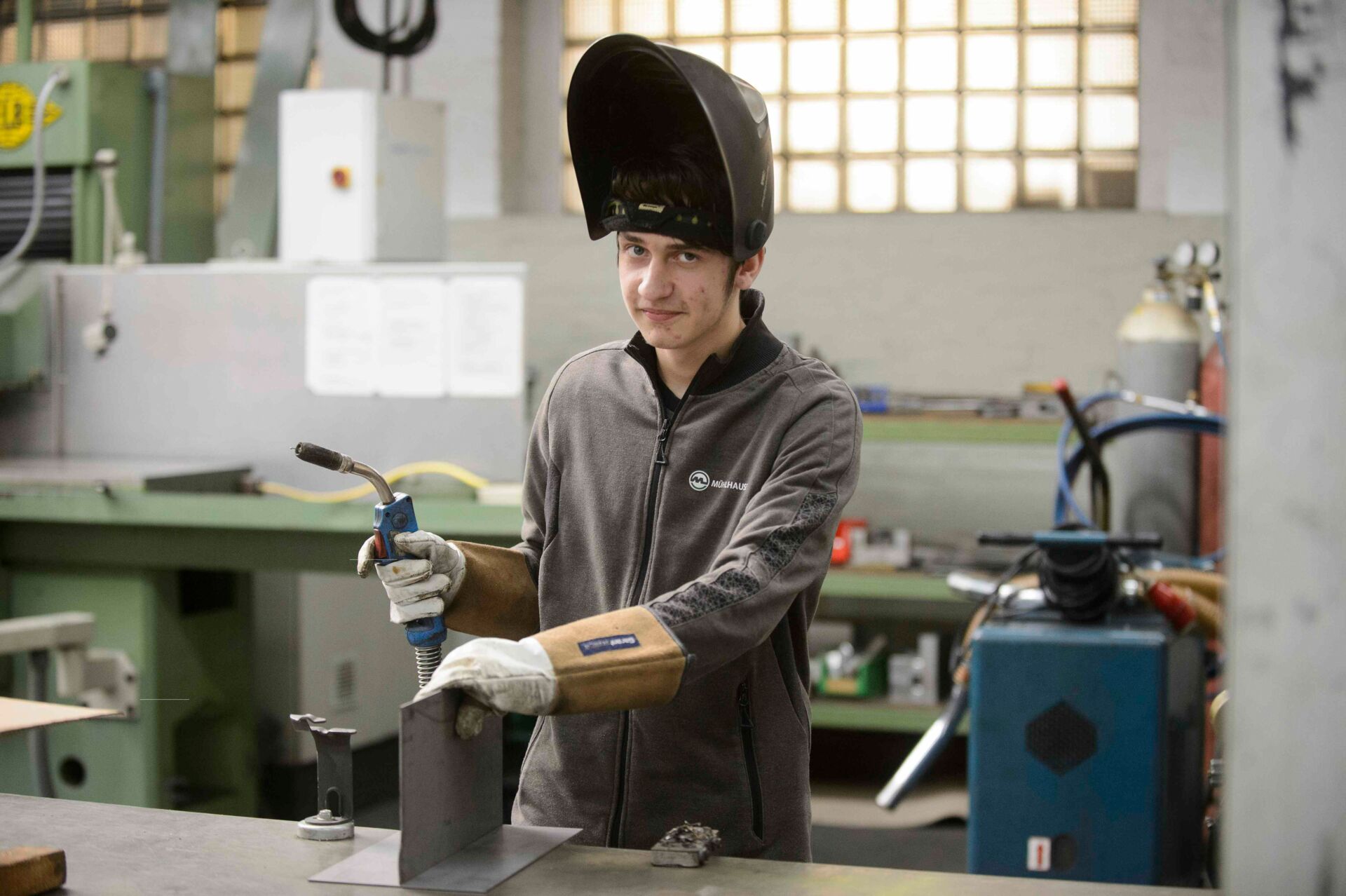 Sie bearbeiten Werkstoffe wie Stahl, Edelstahl oder Aluminium. Dabei schneiden, formen und verbinden sie Metallteile durch Schweißen, Schrauben oder Nieten.