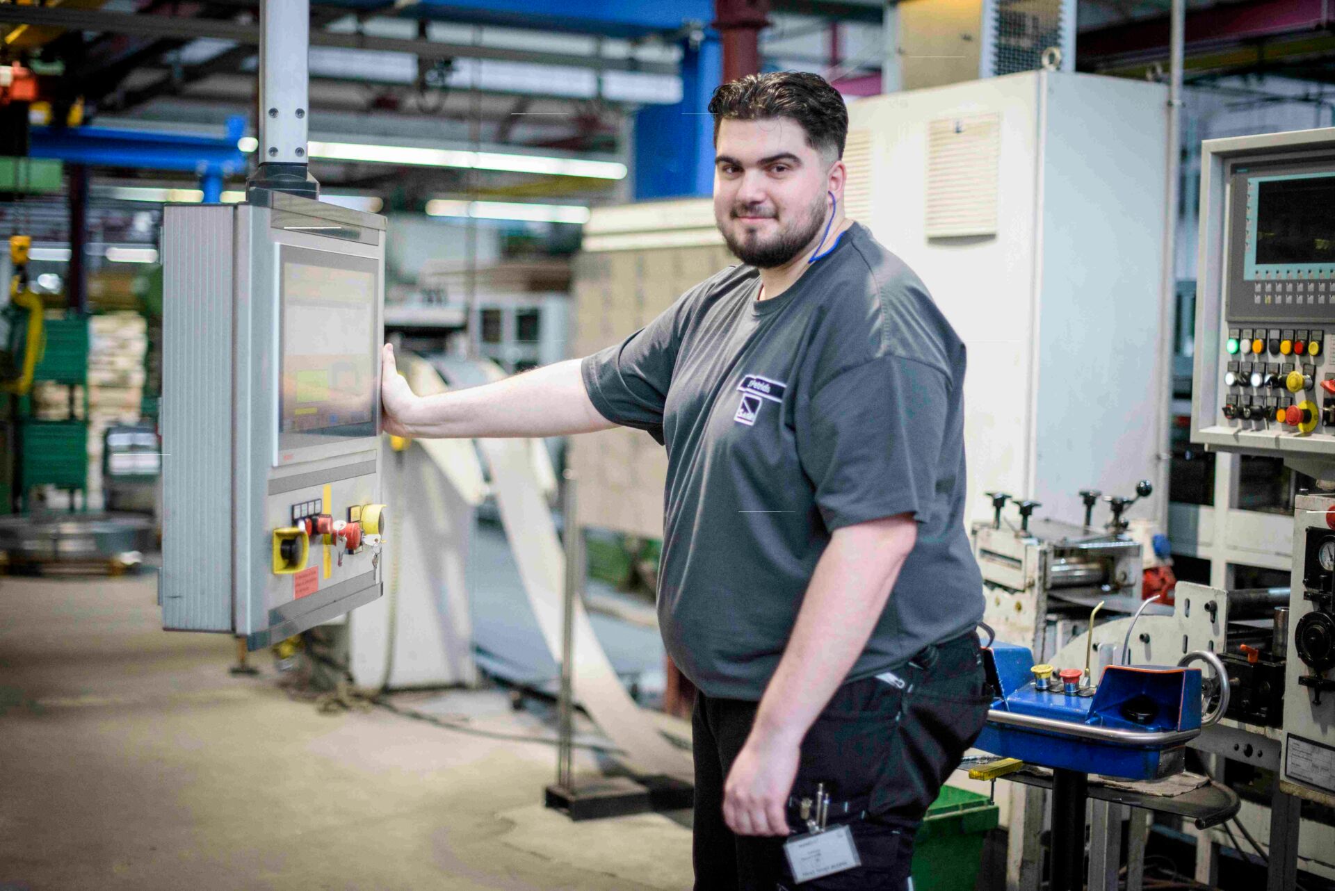 Maschinen- und Anlagenführer:innen arbeiten in der industriellen Produktion. Dort richten sie Maschinen ein, in dem sie z.B. das passende Werkzeug einsetzen und darauf achten, dass genügend Material verfügbar ist.