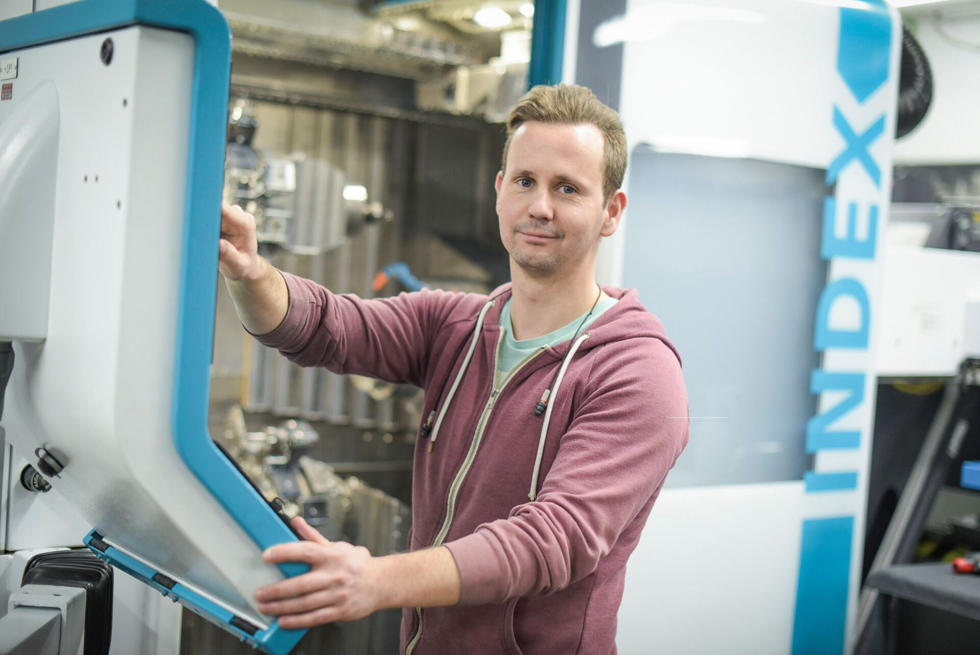 Zerspanungsmechaniker:innen stellen zum Beispiel Bauteile für Maschinen her, die in der Automobilindustrie gebraucht werden. Diese Teile aus Metall können sehr unterschiedlich sein und müssen sehr präzise gebaut werden. Hierfür kümmern sich Zerspanungsmechaniker:innen um den gesamten Fertigungsprozess.
